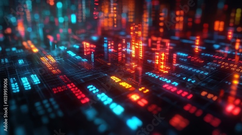 © Panuwat, Fototapeta premium Vibrant digital matrix a glimpse into futuristic technology