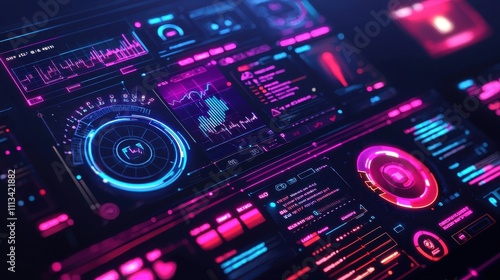 Fototapeta premium Vibrant Digital Mockup Design Showcasing User Interface with Futuristic Elements