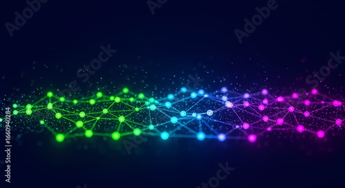 Naklejka premium Vibrant Digital Network Visualization with Glowing Nodes and Interconnected Lines