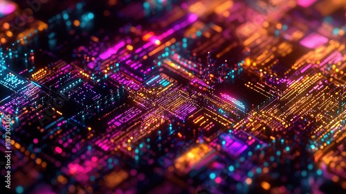 Fototapeta premium Vibrant Digital Technology Concept Showcasing Colorful Circuit Lines