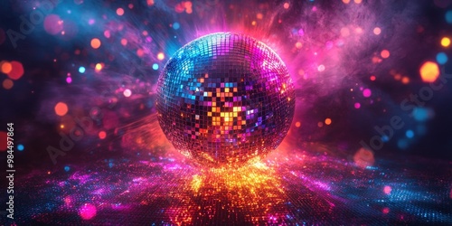 © Nice Seven, Fototapeta premium Vibrant Disco Ball Illuminating a Night Scene