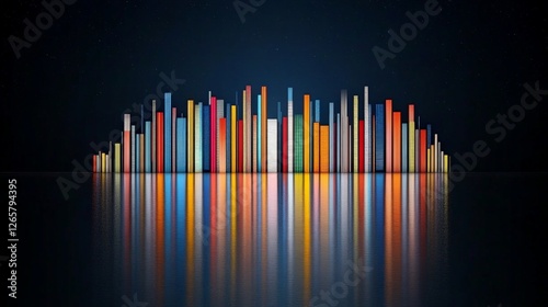© KN Studio, Obraz premium Vibrant Display of Colorful Books on a Serene Water Surface