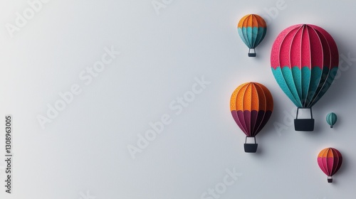 Fototapeta premium Vibrant Display of Colorful Hot Air Balloons Hanging on a Wall
