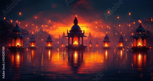 Fototapeta premium Vibrant Diwali Lanterns Illustration Traditional Indian Festival of Lights Celebration