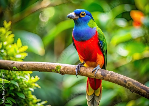 © Danicha, Fototapeta premium Vibrant Dominican Republic National Bird Perched on a Branch in Lush Tropical Environment
