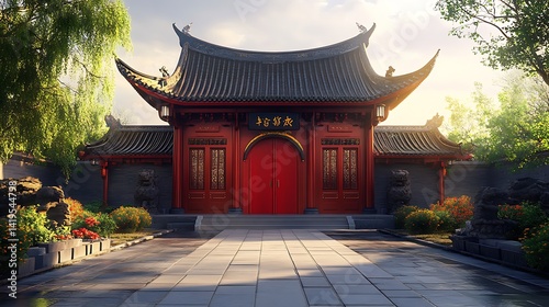 © Shayon, Fototapeta premium Vibrant dragon statues at sacred Asian temple high resolution picture