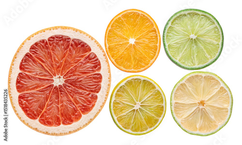 Obraz premium Vibrant Dried and Fresh Citrus Fruit Slices PNG Set for Design Projects