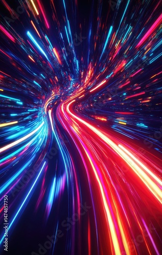 Obraz premium Vibrant, dynamic light streaks creating a twisting tunnel effect
