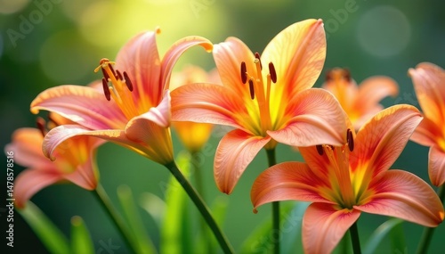 © Sayfar, Obraz premium Vibrant Easter lilies in full bloom, close-up view , spring flowers, beauty