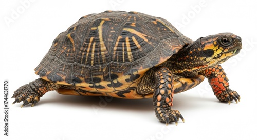© jamil, Fototapeta premium Vibrant Eastern Box Turtle isolated on white background