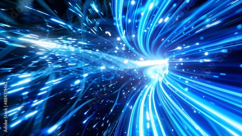 Fototapeta premium Vibrant electric blue light trails in motion, perfect for dynamic and...