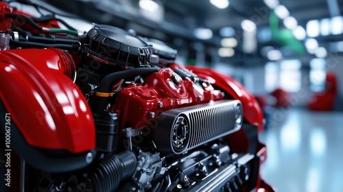 © khonkangrua, Obraz premium Vibrant Engine Close-Up in Tuning Space