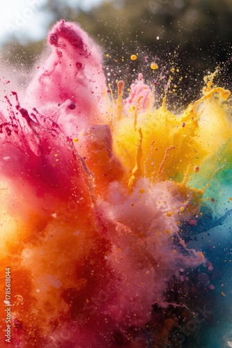 © Sifa, Naklejka premium Vibrant explosion of colorful powder paint in motion