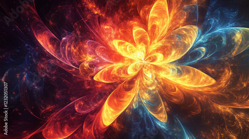 Fototapeta premium Vibrant explosion of colors forming a stunning abstract flower in a cosmic...