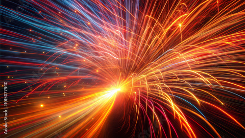 Fototapeta premium Vibrant explosion of fireworks in a dynamic abstract scene.