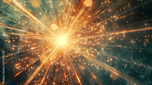 Fototapeta premium Vibrant explosion of light and particles creating a cosmic background effect