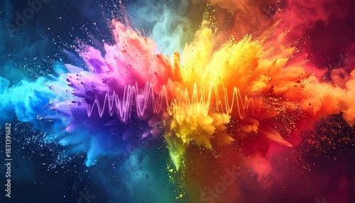 © NURUL, Obraz premium Vibrant Explosion of Rainbow Colored Powder Abstract Background.