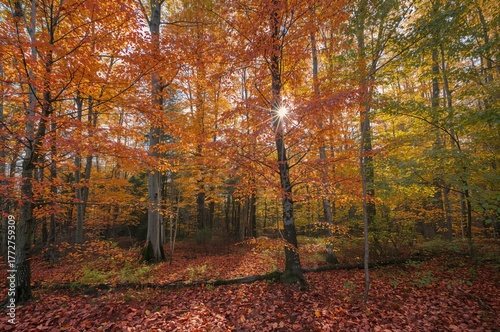 © Rizvan, Fototapeta premium Vibrant fall foliage creating a beautiful natural scenery with trees and sunlight