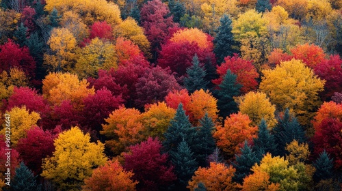 Obraz premium Vibrant fall foliage in a forest. Perfect for nature, autumn, and seasonal...