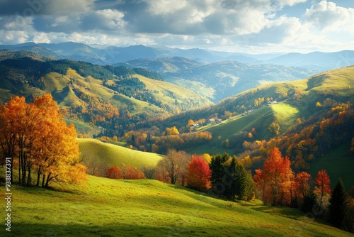 Obraz premium Vibrant fall landscape with rolling hills and colorful foliage