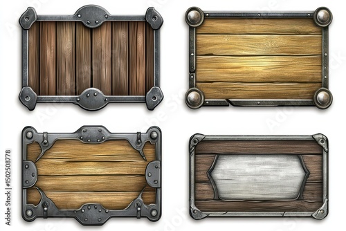 © Olena, Naklejka premium Vibrant Fantasy Frames: Realistic Wooden Panels with Metallic Accents for Creative Designs
