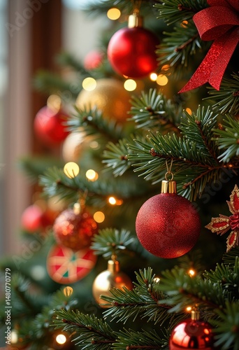 Fototapeta premium vibrant festive holiday decorations adorning luxurious pine branches...