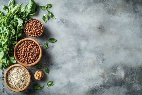 Fototapeta premium Vibrant Fiber-Rich Foods: A Colorful Array of Fresh Vegetables, Fruits, Cereals, Legumes, Nuts, and Greens for a Low Glycemic Index Diet
