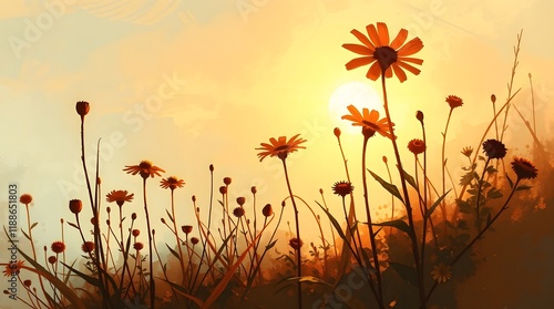 © Md Fazly Rabby, Obraz premium Vibrant field of orange, red, and blue flowers in full bloom.