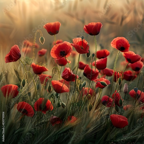 Fototapeta premium Vibrant Field of Poppies: A Field of Remembrance