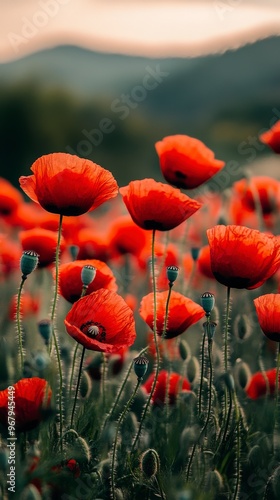 © BG_Illustrations, Obraz premium Vibrant Field of Red Poppies in Full Bloom