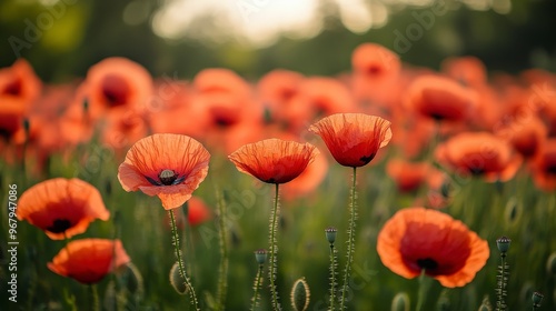 Fototapeta premium Vibrant Field of Red Poppies in Full Bloom