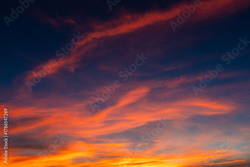 Fototapeta premium Vibrant Fiery Sunset Cloudscape Texture and Background