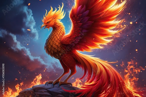Obraz premium Vibrant Fire Phoenix Rising with Fiery Particles and Flames