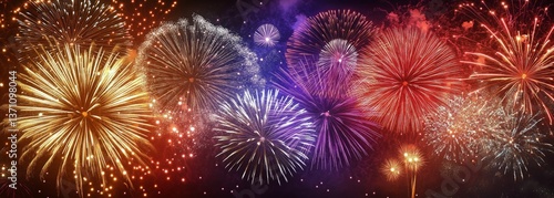 Fototapeta premium Vibrant Firework Display Illuminates Night Sky in a Festive Celebration