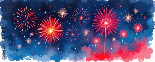 Fototapeta premium Vibrant fireworks burst in the night sky, creating a festive and colorful...