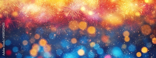 Fototapeta premium Vibrant Fireworks Display Against Dark Blue Sky