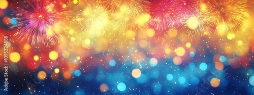 Fototapeta premium Vibrant Fireworks Display Against Dark Blue Sky