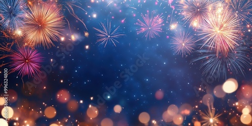 Fototapeta premium Vibrant Fireworks Display Against Dark Blue Sky