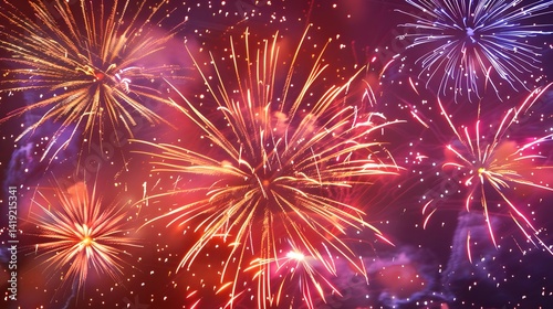 Fototapeta premium Vibrant Fireworks Display: Exploding Colors Light Up the Night Sky with...