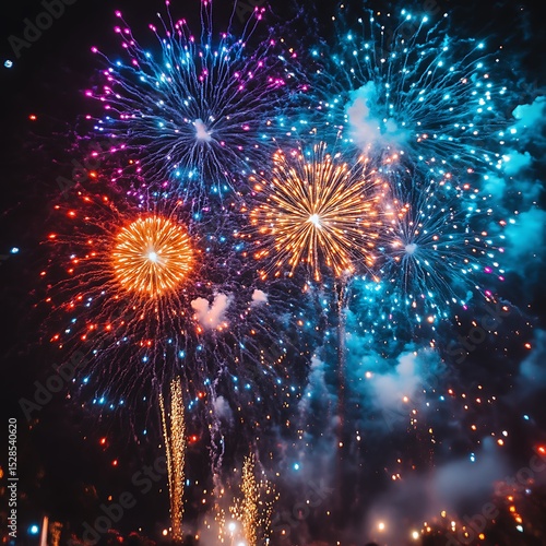 Fototapeta premium Vibrant fireworks display exploding in night sky