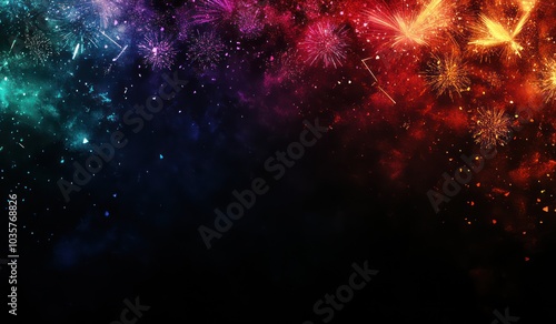 © ANUAR, Naklejka premium Vibrant Fireworks Display in a Starry Night Sky