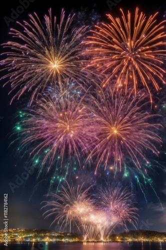 © ANDREY PROFOTO, Naklejka premium Vibrant fireworks display in dark night sky