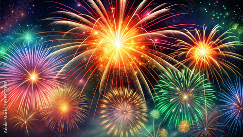 Naklejka premium Vibrant fireworks display in festive mood lighting up night sky for celebrations