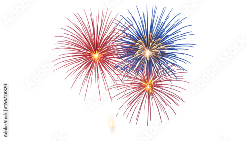 Fototapeta premium Vibrant Fireworks Explode Against a Deep Dark Night Sky. A captivating image of fireworks bursting in red blue and white colors