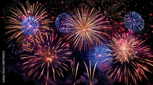 Naklejka premium Vibrant fireworks for New Year in the night sky