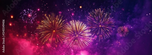 Fototapeta premium Vibrant fireworks illuminating the night sky.