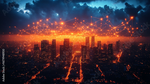 © Wanida, Fototapeta premium Vibrant Fireworks Over Illuminated Night Cityscape