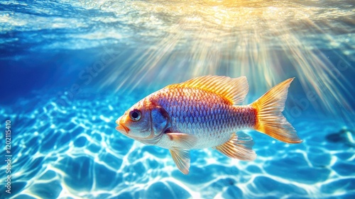 Fototapeta premium Vibrant fish swimming in clear blue water under sunlight