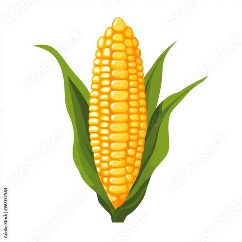 Obraz premium Vibrant Flat Design Corn Cob Illustration on White Background - Simple and...