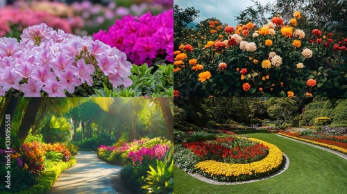 © Alif, Obraz premium Vibrant floral collage showcasing diverse blooms in gardens. (1)